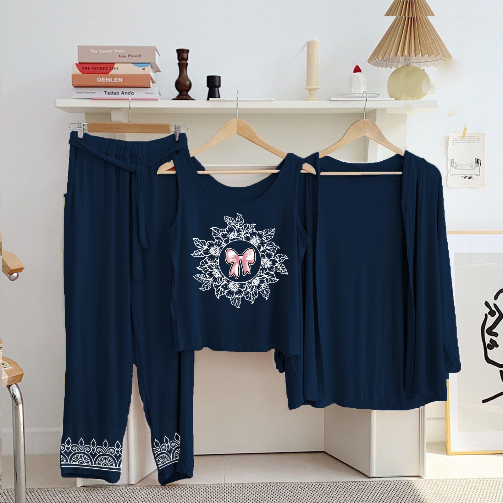 3 PCS NIGHT SUITS PRINTED . FEBRIC JERCY . SIZE MEASURMENT . INNER CHEST 20/ 21 LENGTH 26 GOWN LENGTH 36 .TROUSER LENGTH 38/39 .