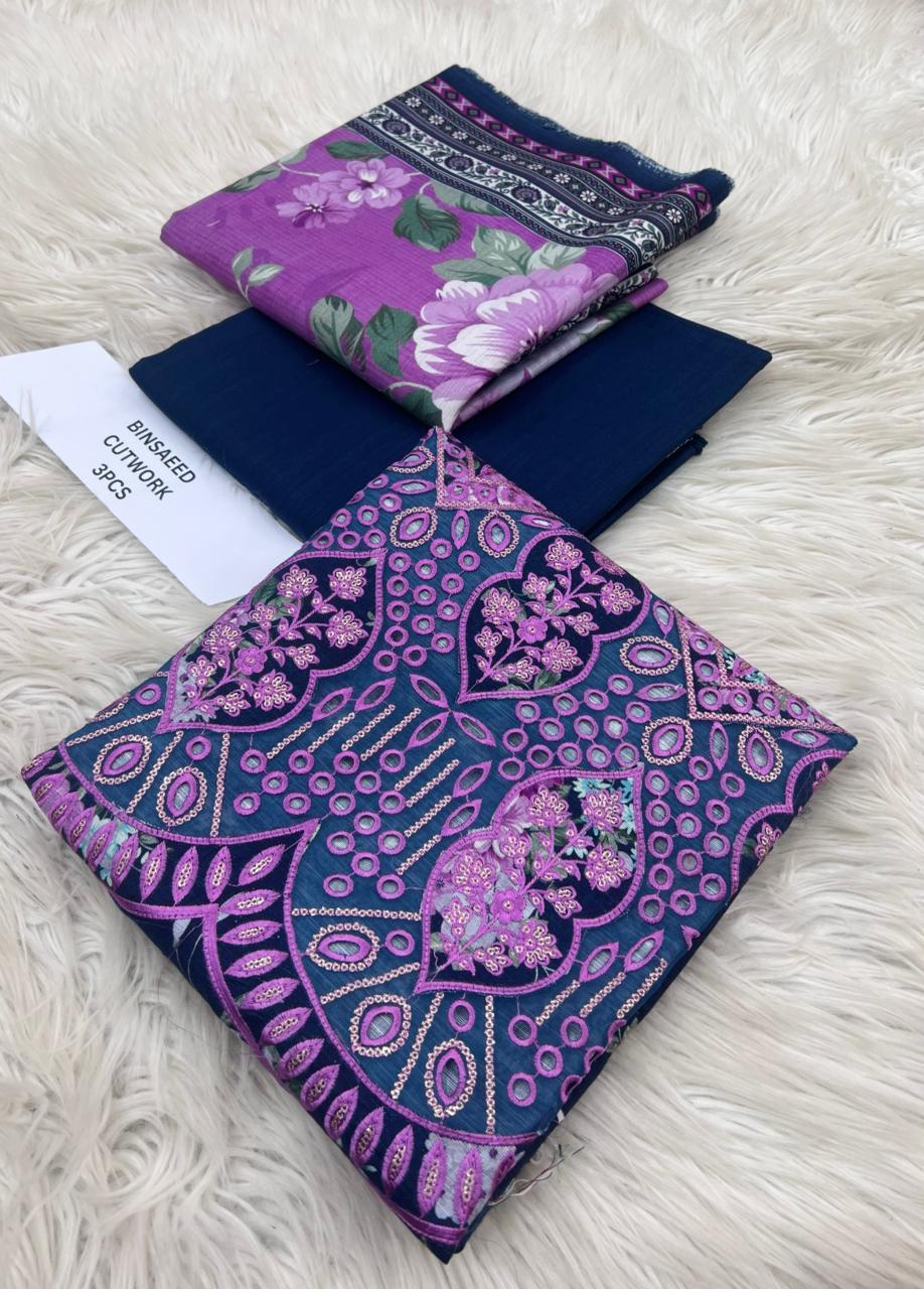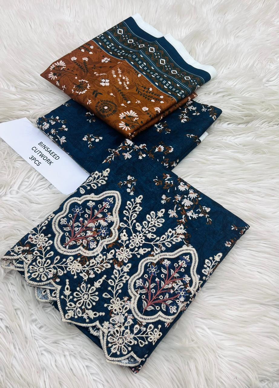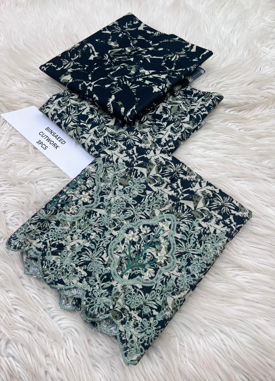 ORIGNAIL STOCK . BIN SAEED . PURE KHADAR COLLECTION 3PCS . GIGITAL EMB DESIGN . STUFF . BEST QUALITY PURE EMB KHADAR .. PRINTED KHADAR EMB SHIRT . PRINTED KHADAR DUPATTA . PRINTED KHADAR TROUSER AN DYED . BRAND STEMP ON FEBRIC .