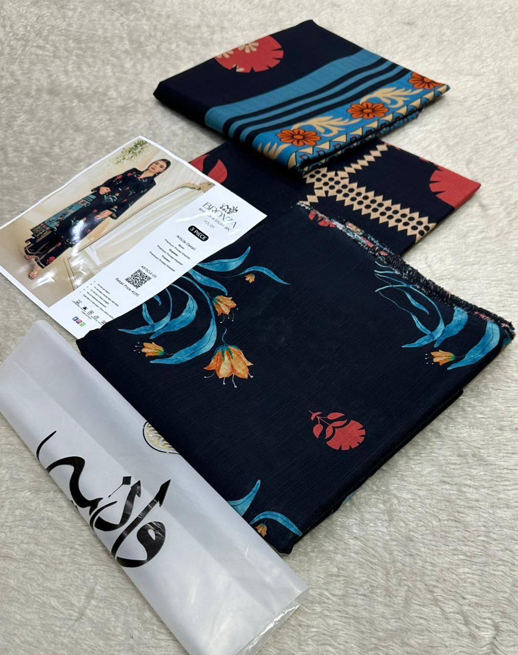 pure khadar collection 3pcs new collection . digital EMB design . stuff pure khadar . printed khadar shirt . printed khadar trouser .printed khadar dupatta . brand stemp on febric .