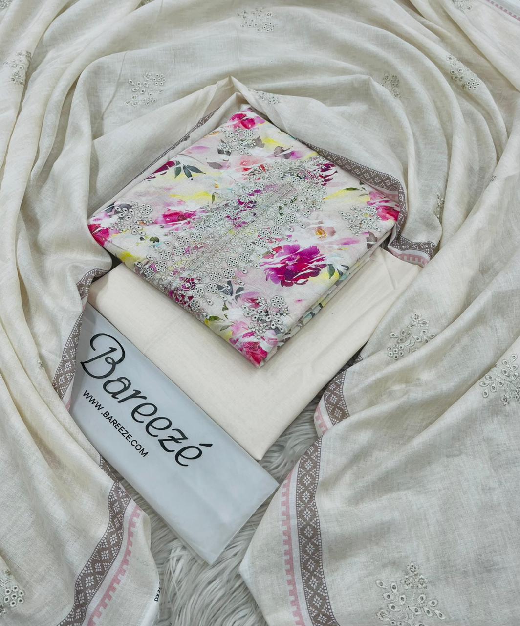 BAREEZE 3PCS LAWN CUTWORK SUITS ORIGINAL STOCK AFTER WASH GURENTTED