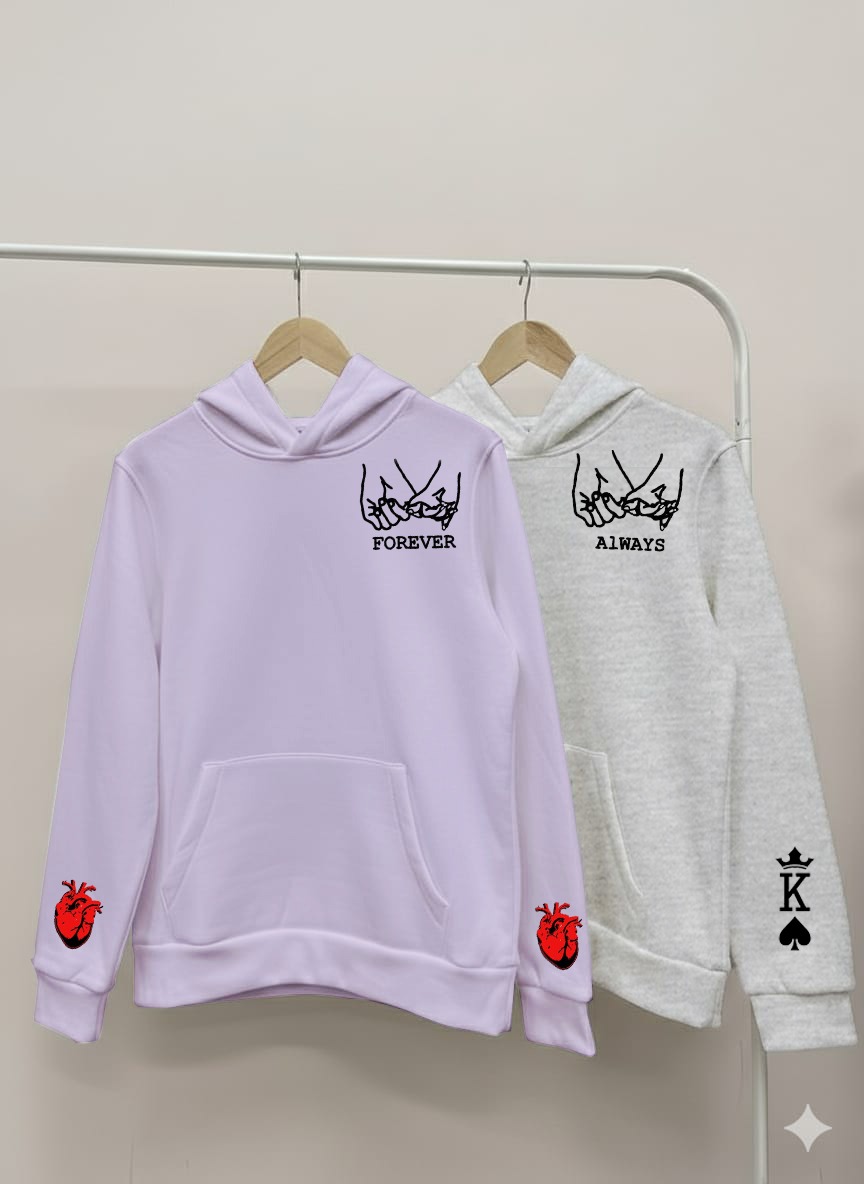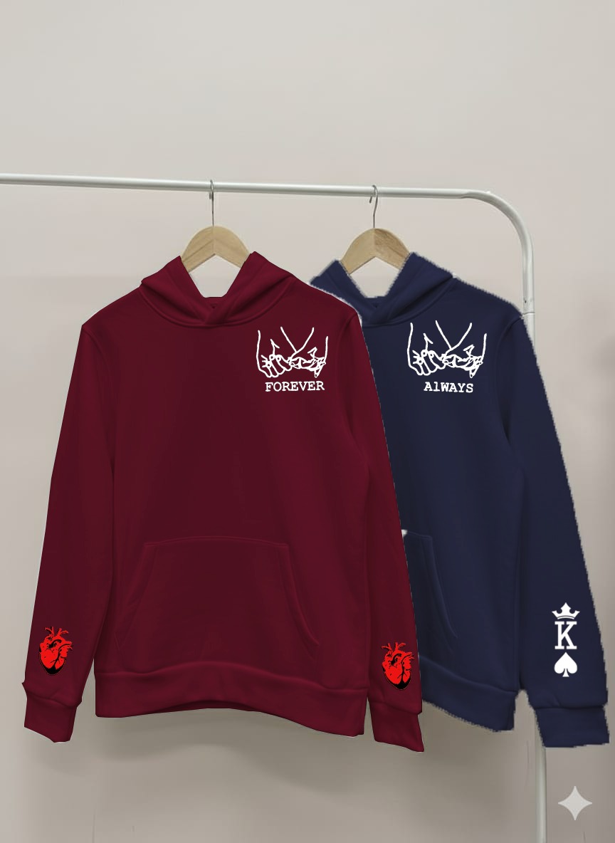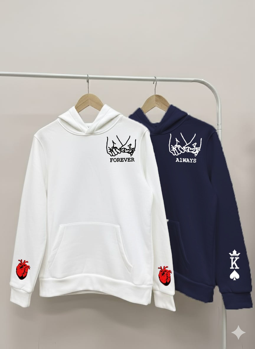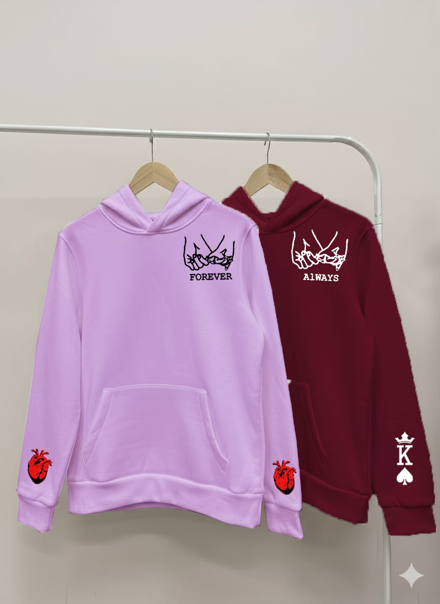 COUPLE HOODIES … SIZE MEASURMENT .. MEDIUM . CHEST 17/18 . LENGTH 26 . LARGE CHEST , 19/20 , LENGTH , 27 , XLARGE CHEST 21/22 , LENGTH 28 . FEBRIC FLEECE