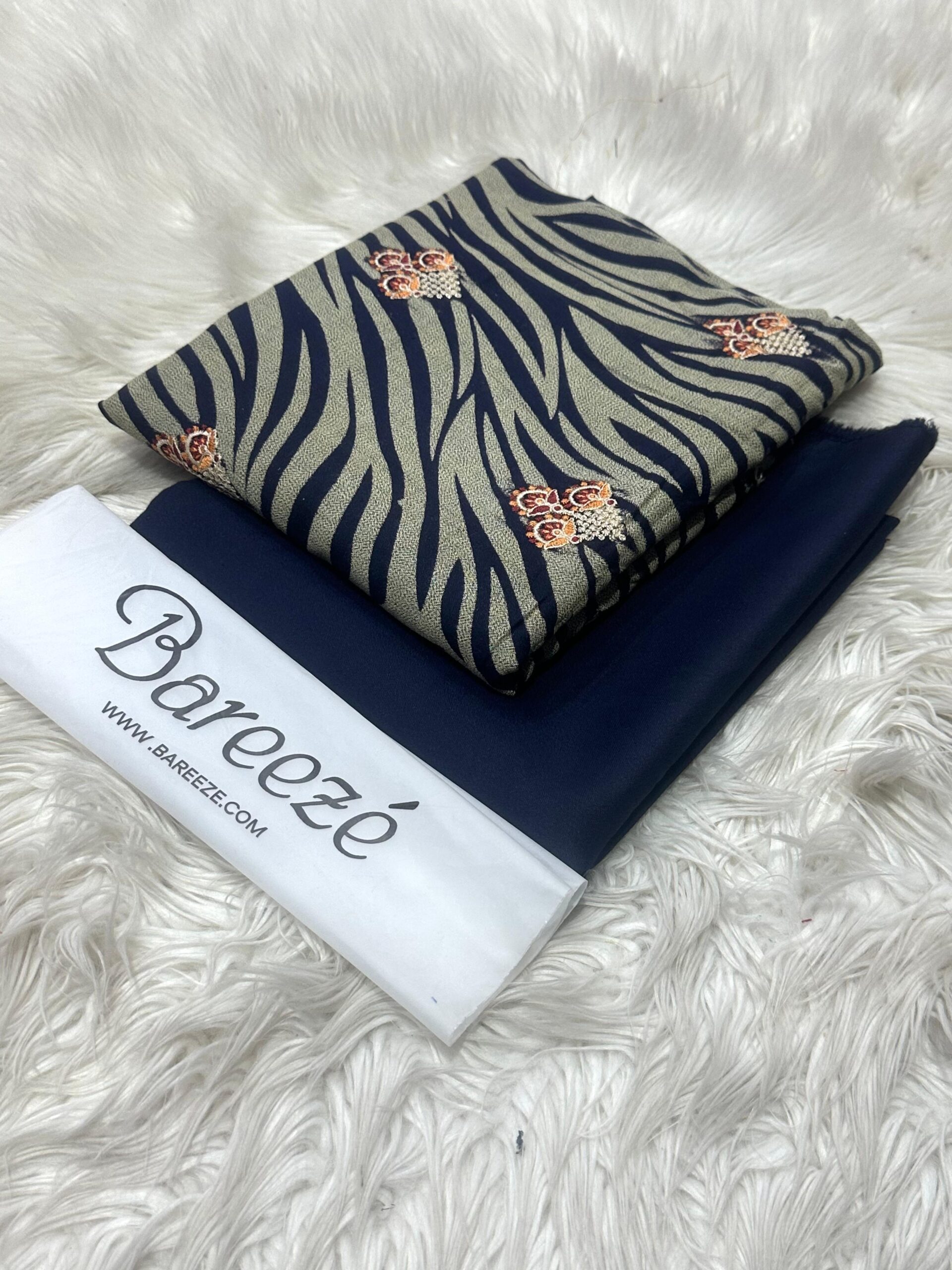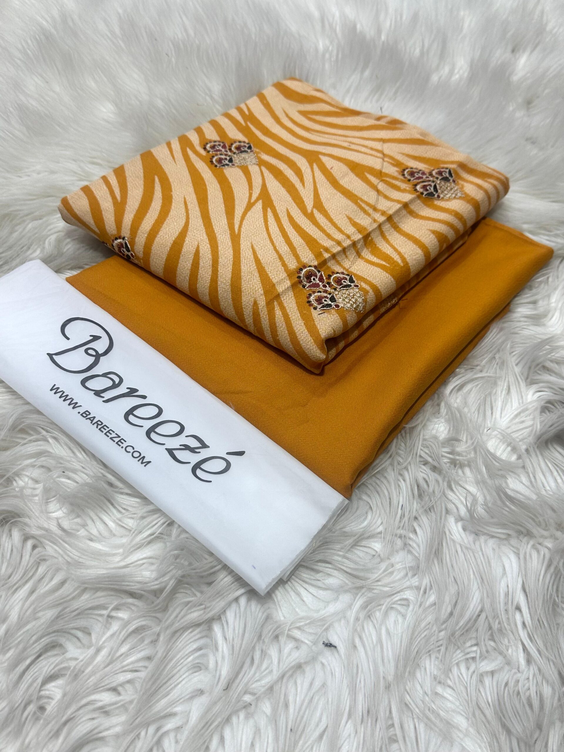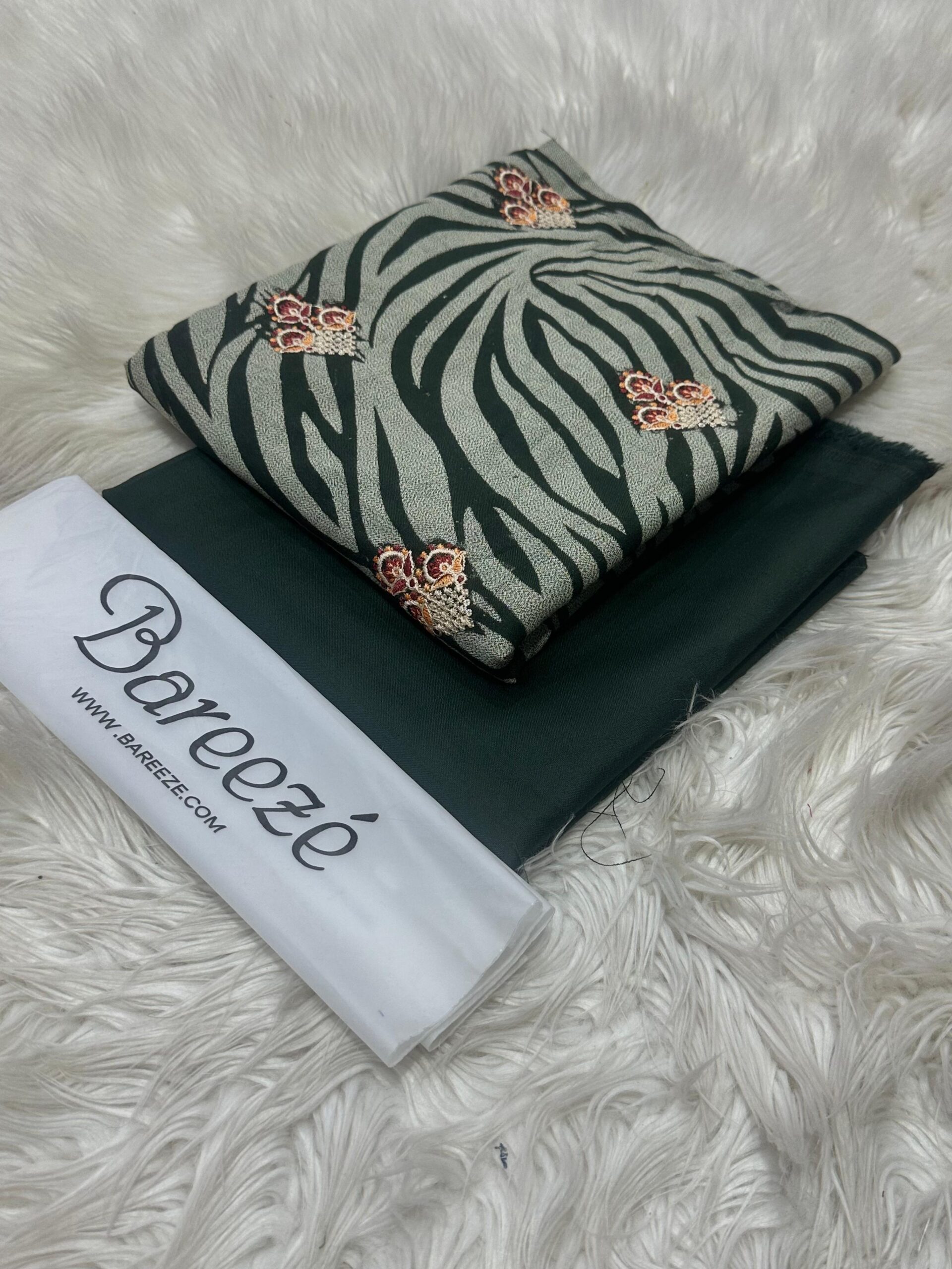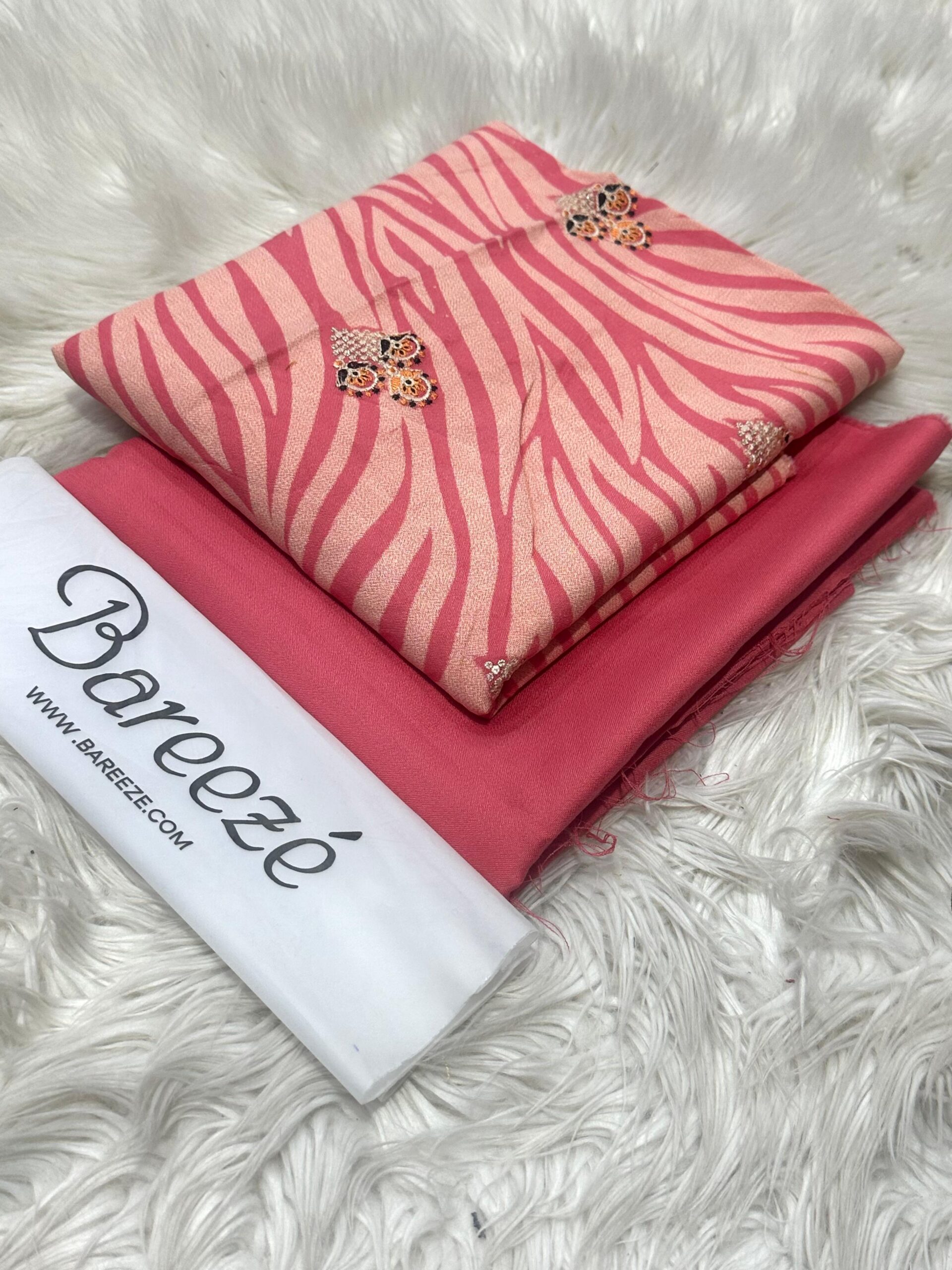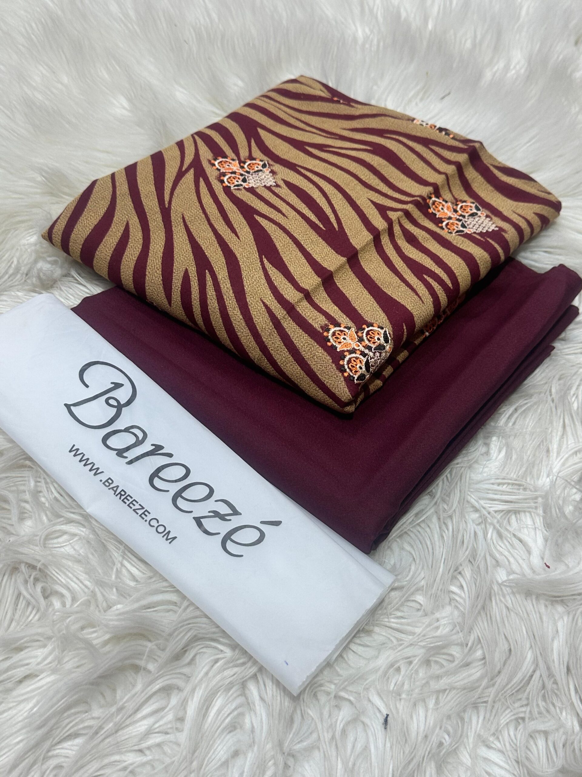 BAREEZE 2 PCS . STUFF DHANAK . PRINTED FRONT FULL EMBROIDERY .. BACK EMBROIDERY . SLEEVES EMBROIDERY . DYED TROUSER .