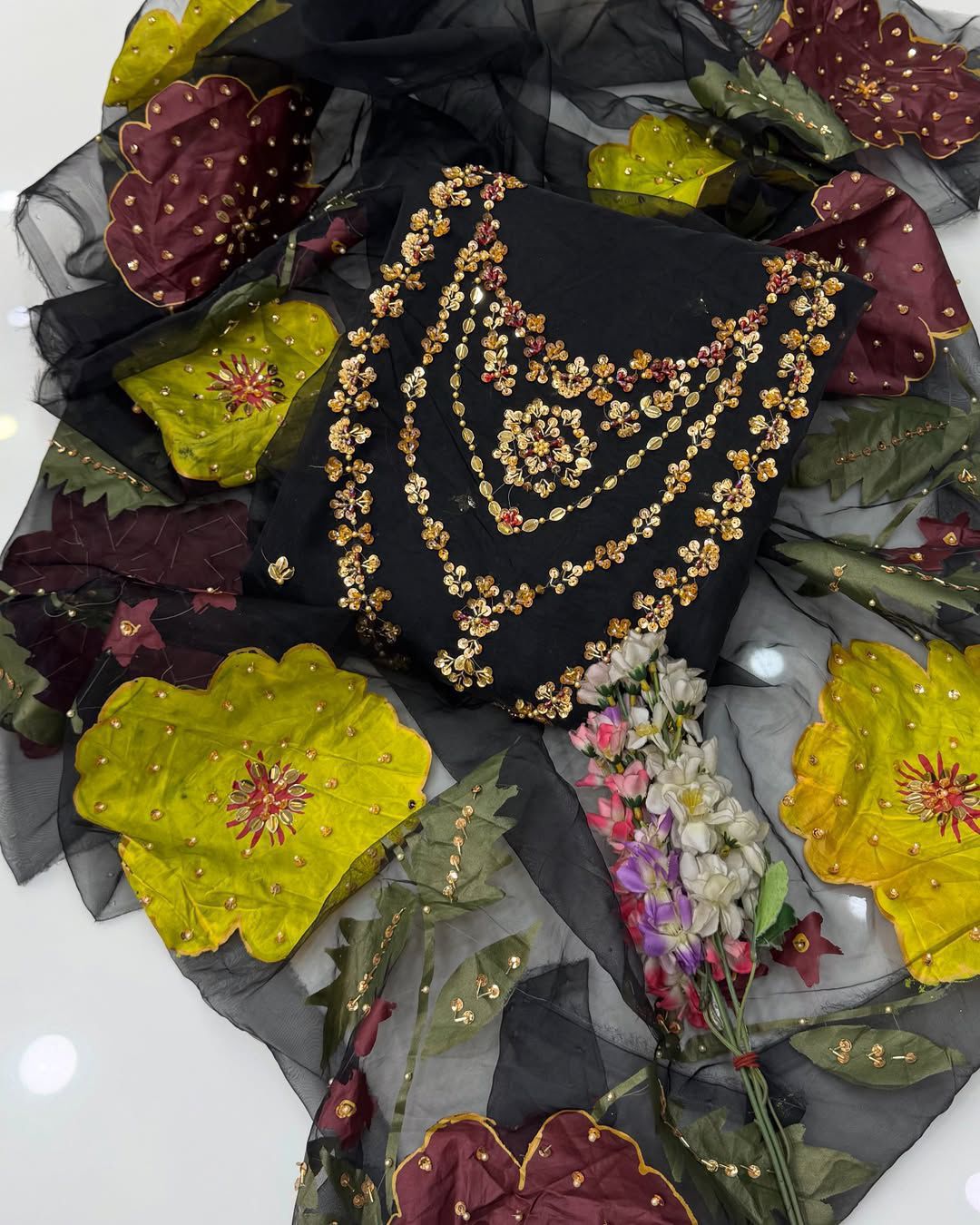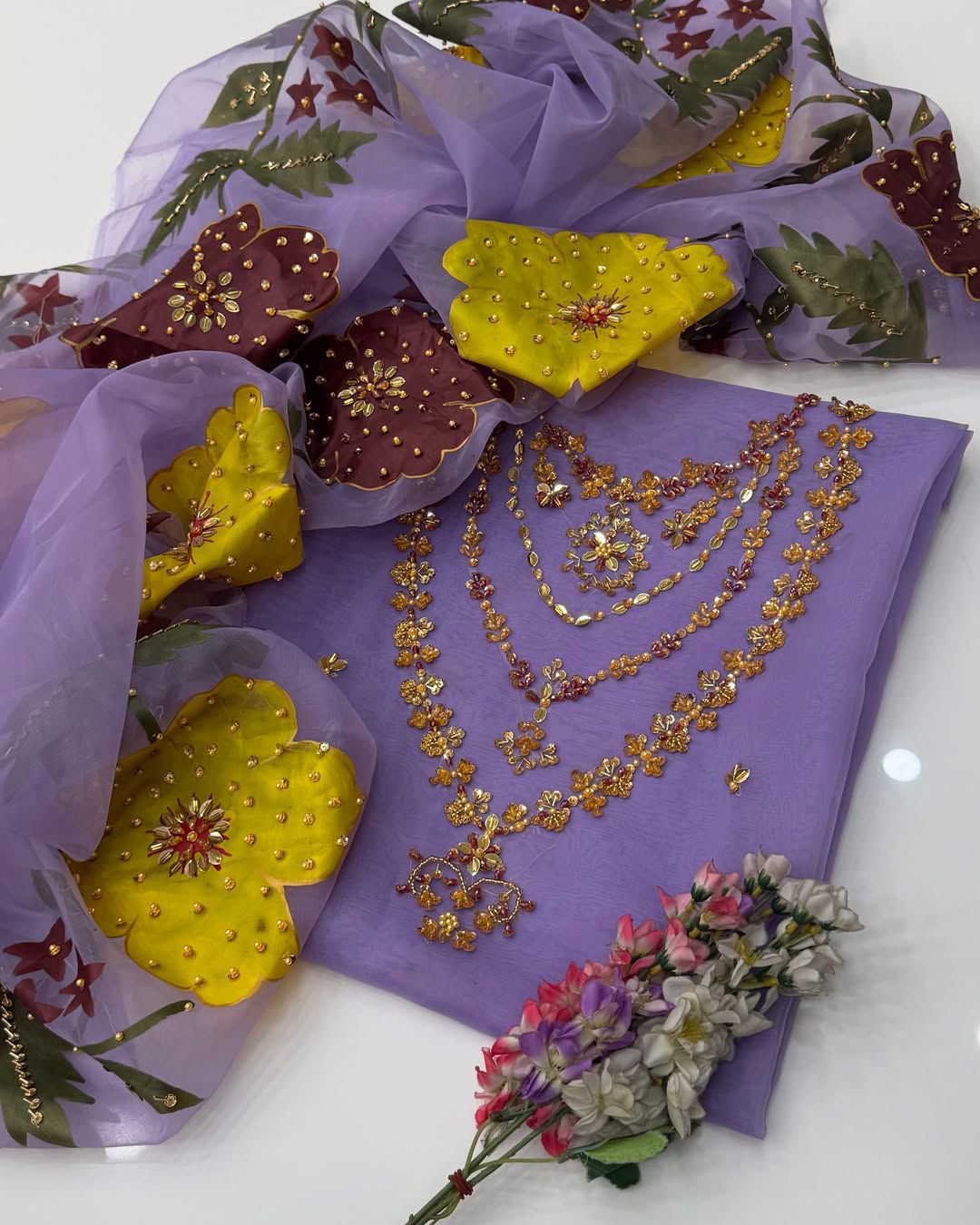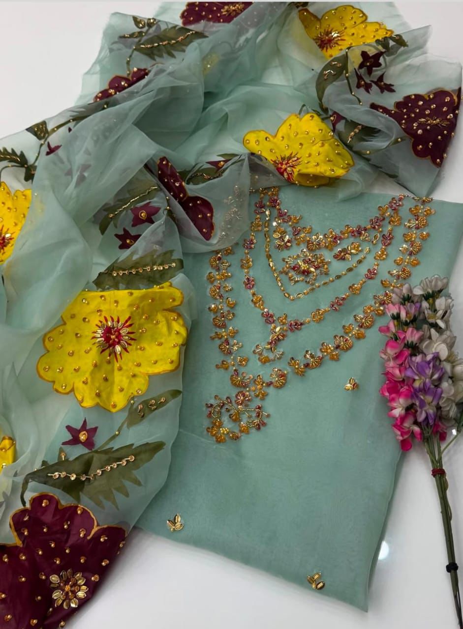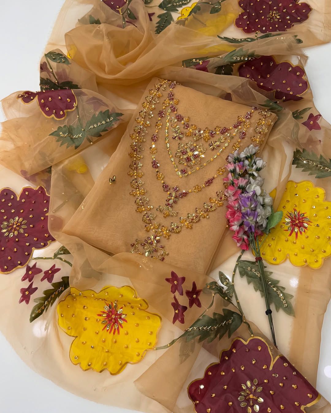 👗 Fully Embroidered Organza Shirt with Matching Handmade Heavy Sleeves