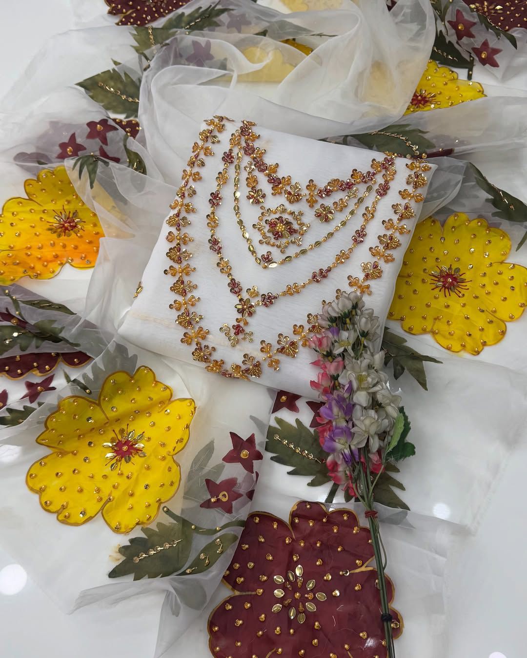 🎨 Original Organza Dupatta with Fancy Zari Beads & Oil Paint Brush Detailing