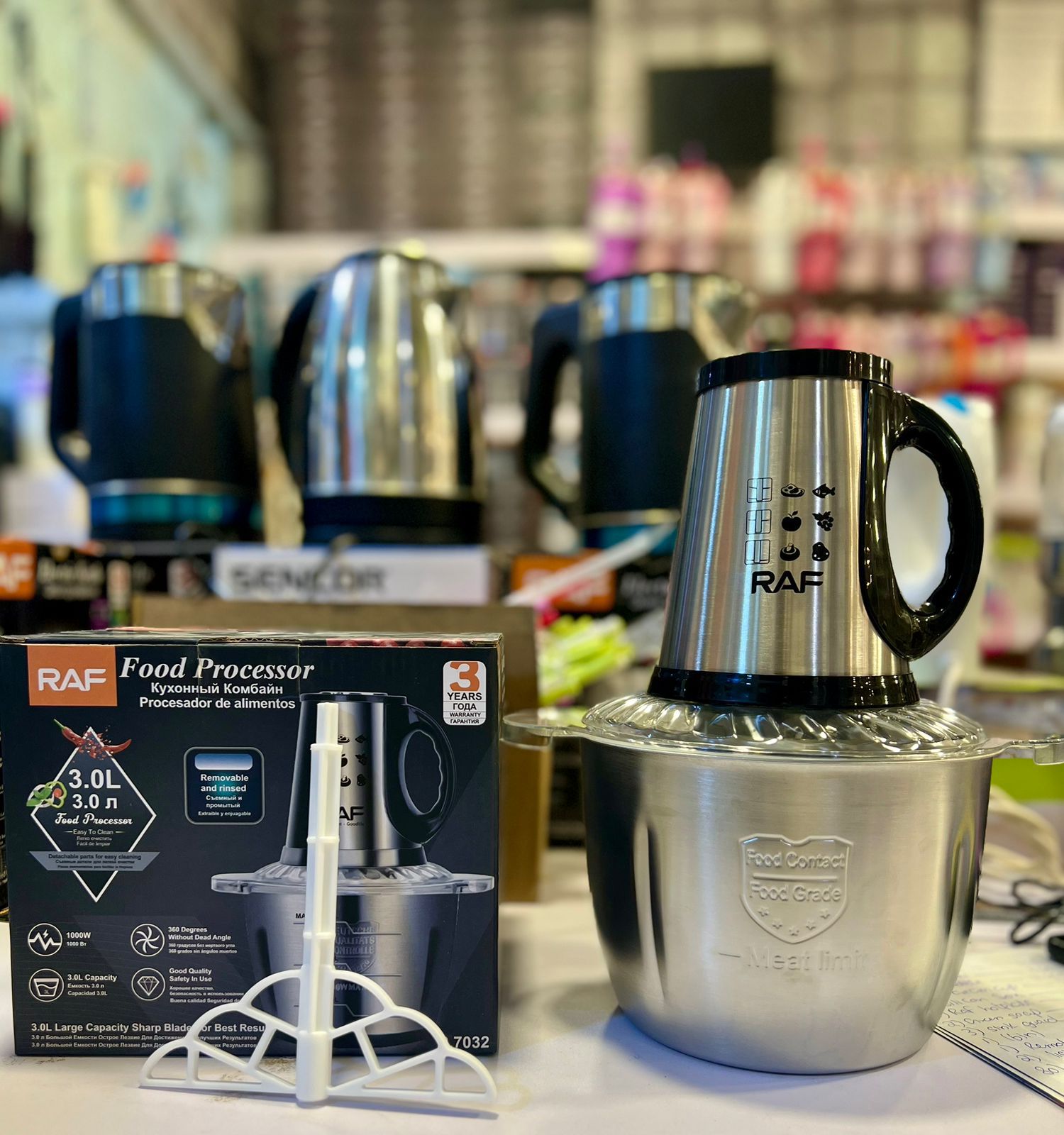original raf 3l meat grinder .kitchen expert meat grinder .3 capacities are available . all steel body . 500w power . quality assurance .
