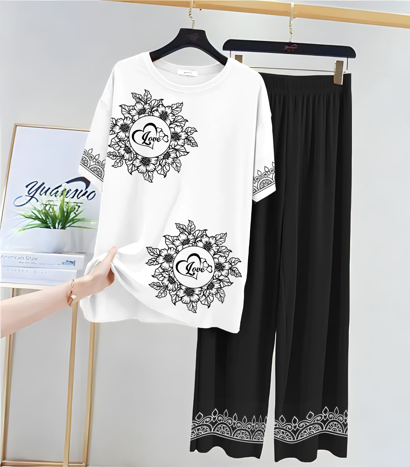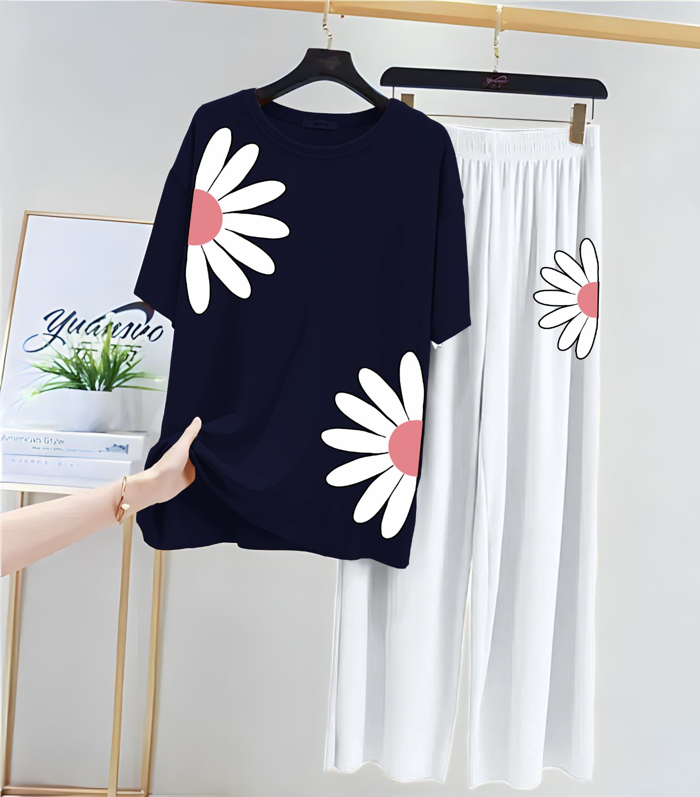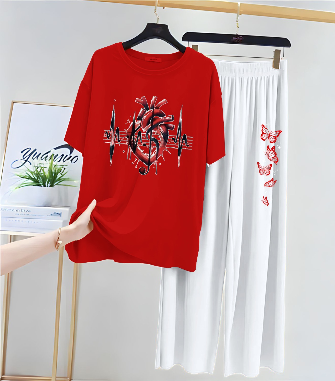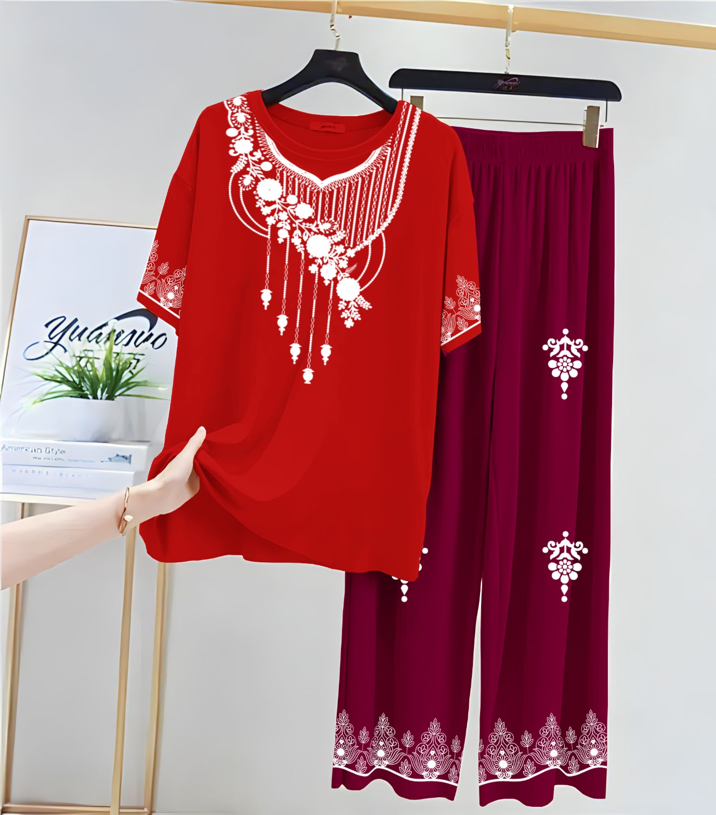 new arrivals . printed night suits for girls and womens . stuff , cotton jersey .new night suit with flapper for women . shirt febric soft , soft jersey . trouser febric jersey . size medium 18/ 19 chest , length 26 . large 20 / 21 . length 28 . extra large 22/ 23 chest . 30 length . trouser length 37 / 38