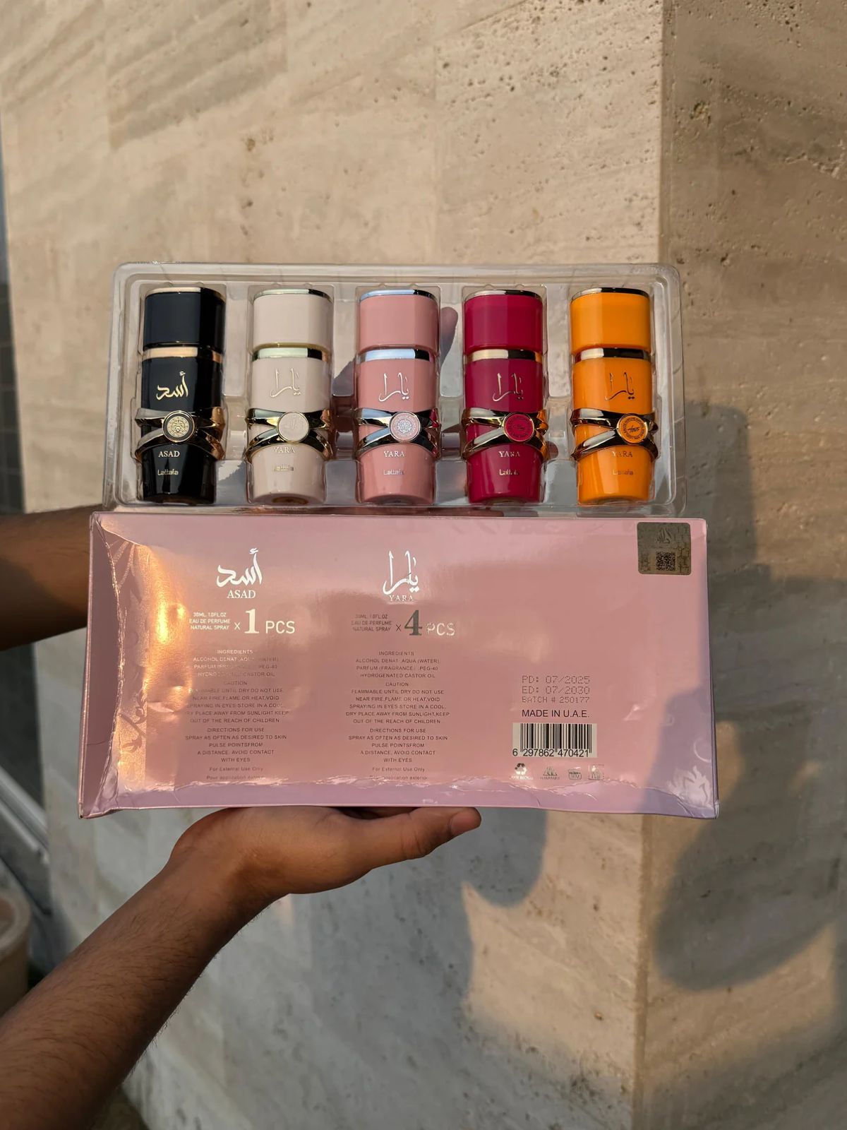 LATTAFA YARA 4PCS 1PCS AND ASAD 1PCS EAUDE PERFUME NATURAL SPRAY (30 ML +5) COMPLET SET