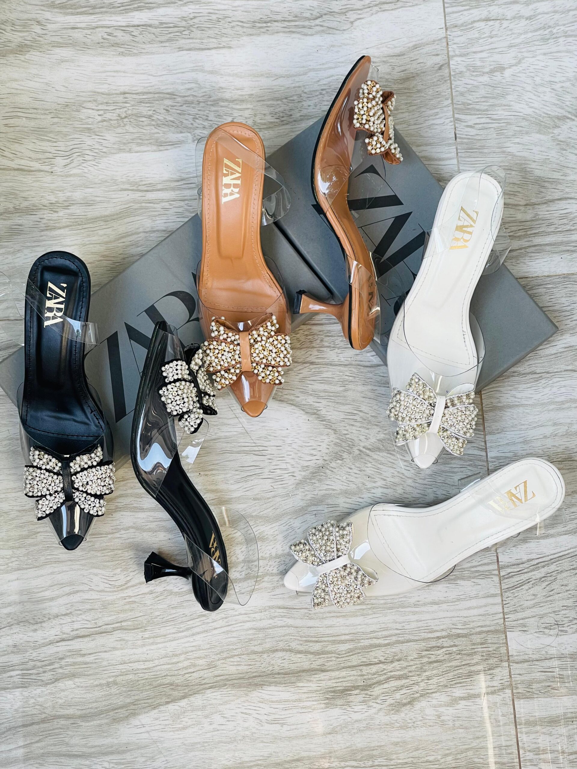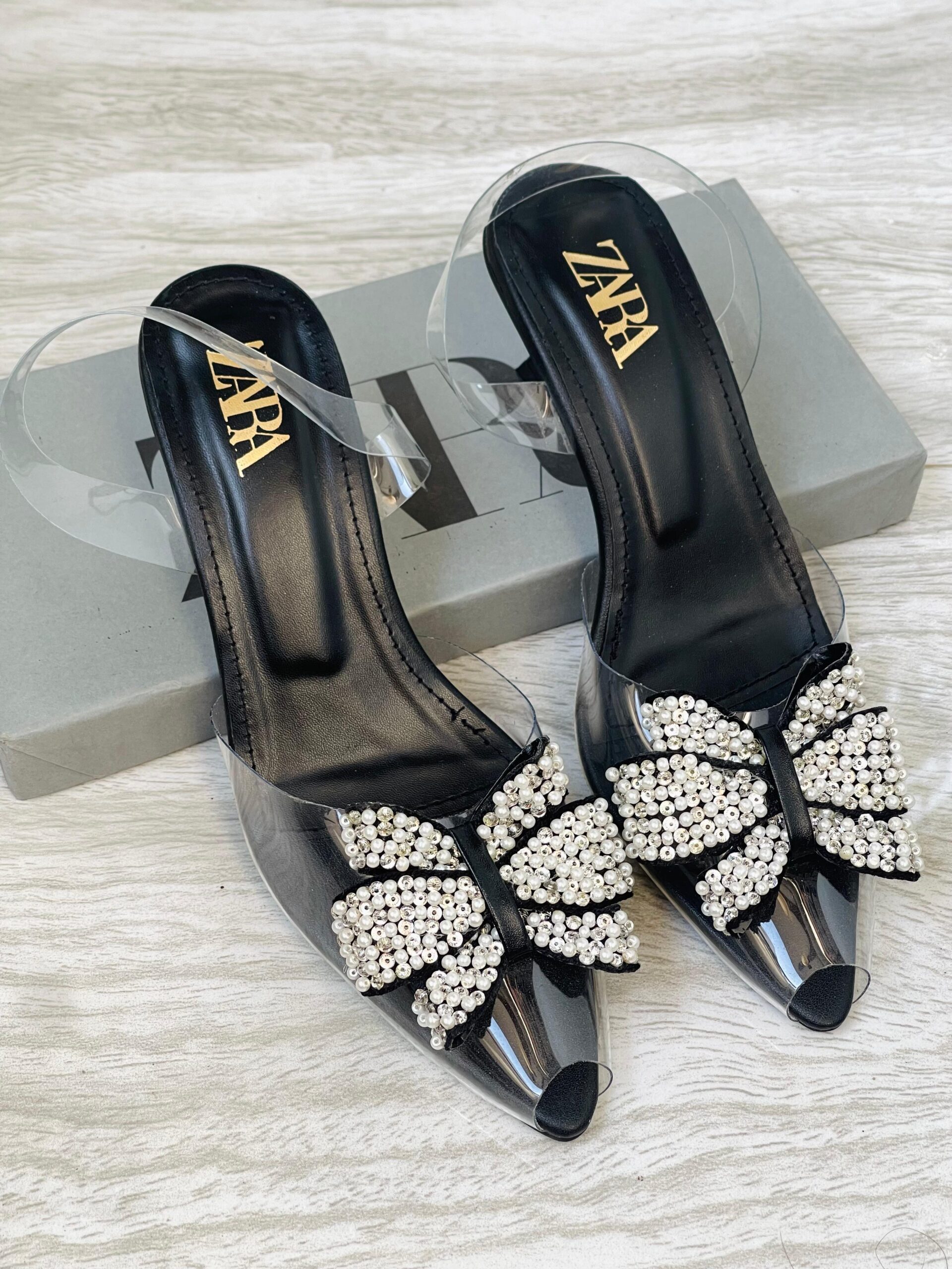 NEW ARRIVAL , ZARA EMB BOW HEELS , SIZE 36 – 41 , COLOUR 3 , WITH BRAND BOX